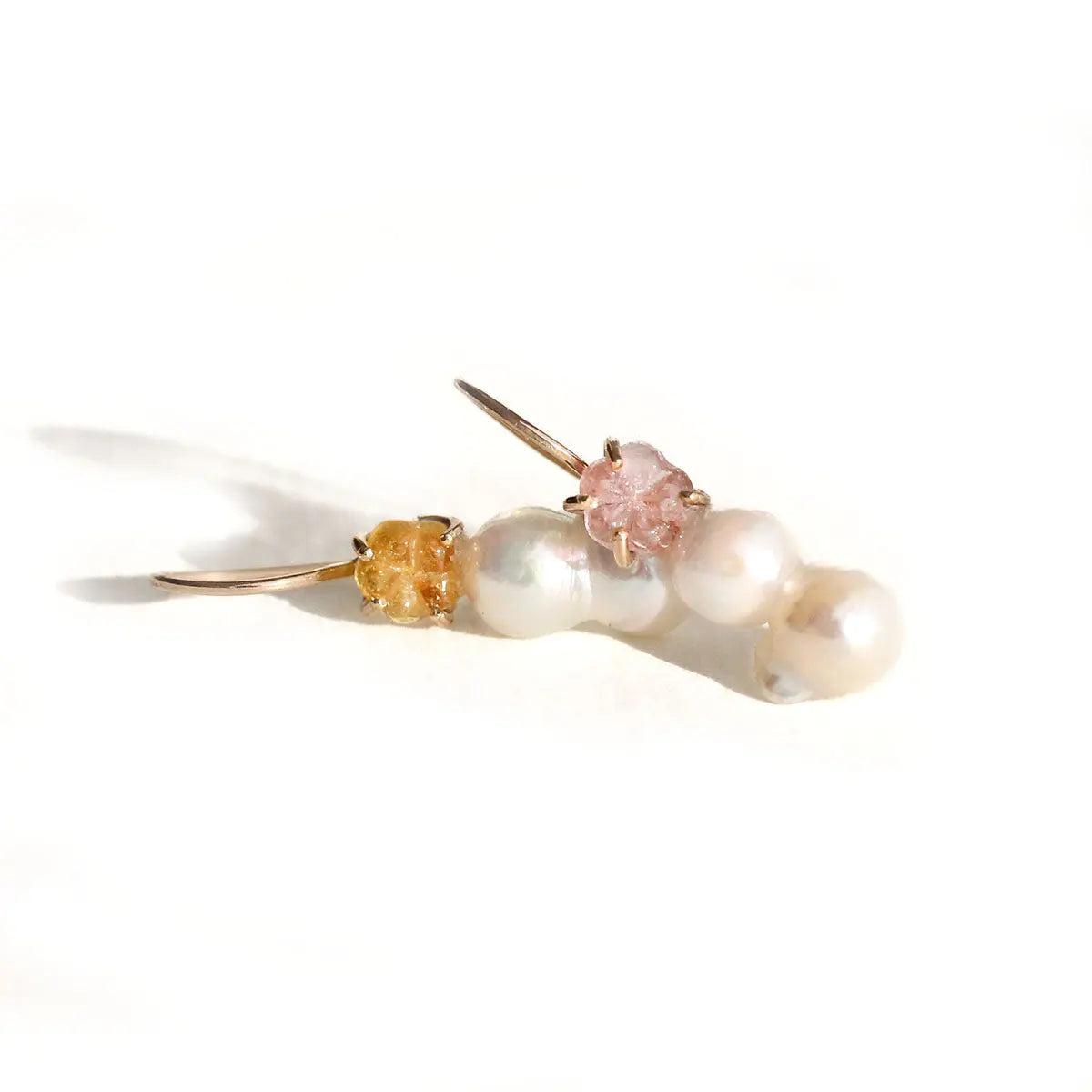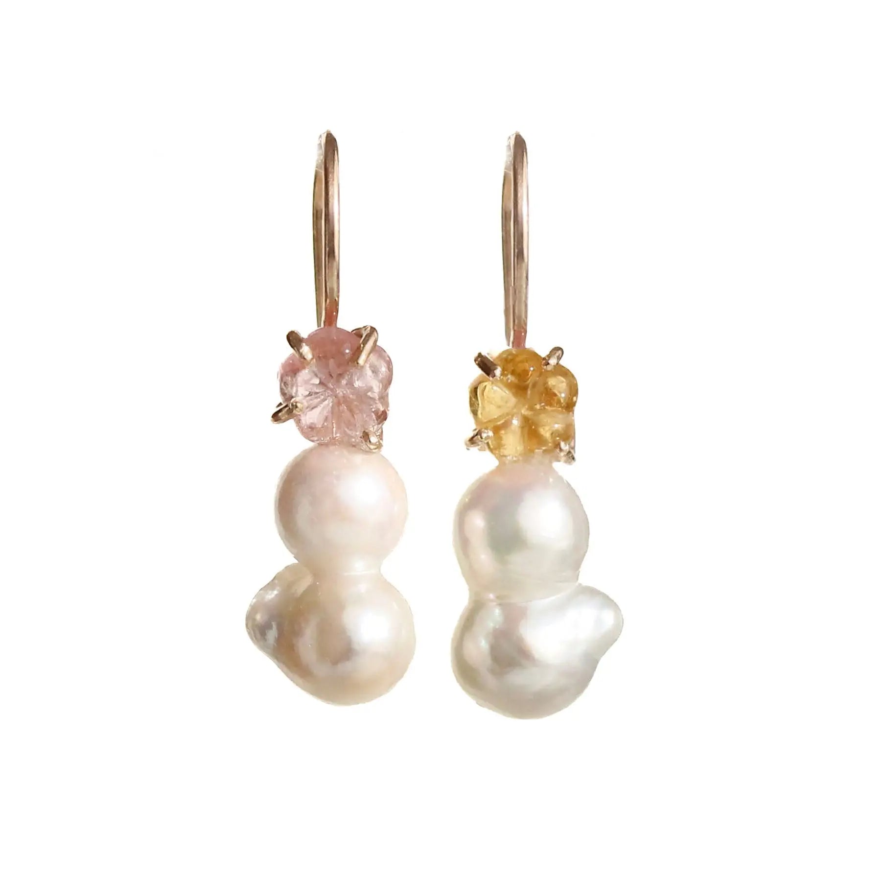 To elevate their beauty further, each pearl is paired with intricately carved AAA-grade tourmaline gemstones in soft pink and sunny yellow, adding a touch of vibrant color and refined elegance. A perfect harmony of rarity, craftsmanship, and timeless charm.