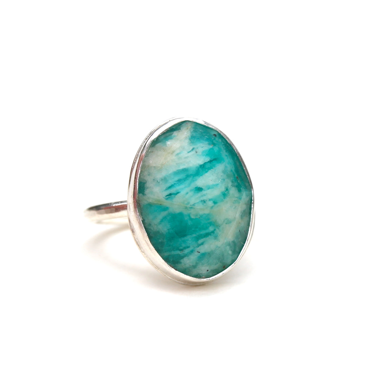 A one of a kind ring made with the most amazing vibrant and faceted amazonite gemstone set in sterling silver. The amazonite stone measures approximately 2cm/1.5cm